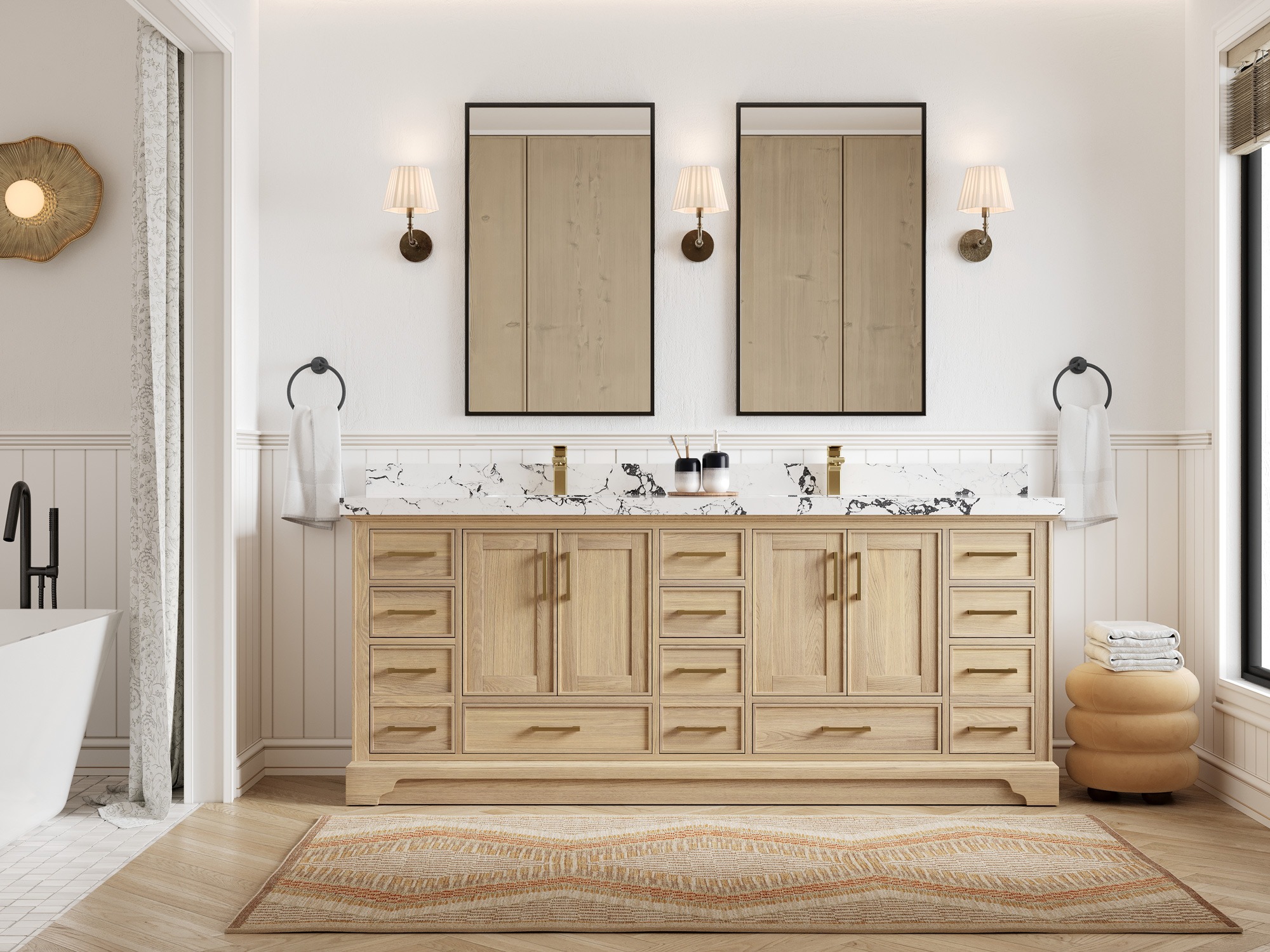 Charlotte Oak Wood 84 in. W x 22 in. D Double Sink Bathroom Vanity